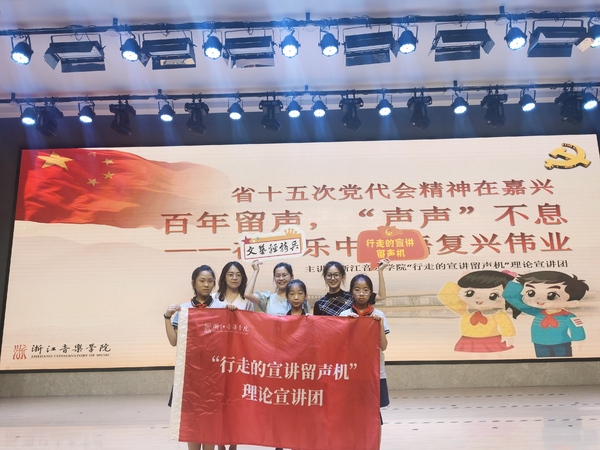 不同于传统的宣讲模式,宣讲团以《百年留声,“声声”不息——在音乐中感悟复兴伟业》为题,用丰富的艺术形式回顾党的百年光辉历程,生动诠释伟大建党精神,并充分融入各地区域元素。在湖州,宣讲团突出湖州籍艺术家沈亚威的作品呈现,同时结合袁家军书记在湖州宣讲省第十五次党代会精神时提出的要求,充分激发湖州人民群众的认同感和使命感。此外,浙音师生以红色音乐作品为主打,与地方优秀的理论宣讲员合作,形成具有地域特色的音乐党课。在余姚,师生配合余姚“舜江青语”理论宣讲联盟的青年宣讲员,慷慨激昂地奏响了《第一交响序曲》;在临平,师生与“新时代临平青年说”宣讲团合作《爱在吴越山水之间》等3部精彩的宣讲作品,博得观众的阵阵叫好声。