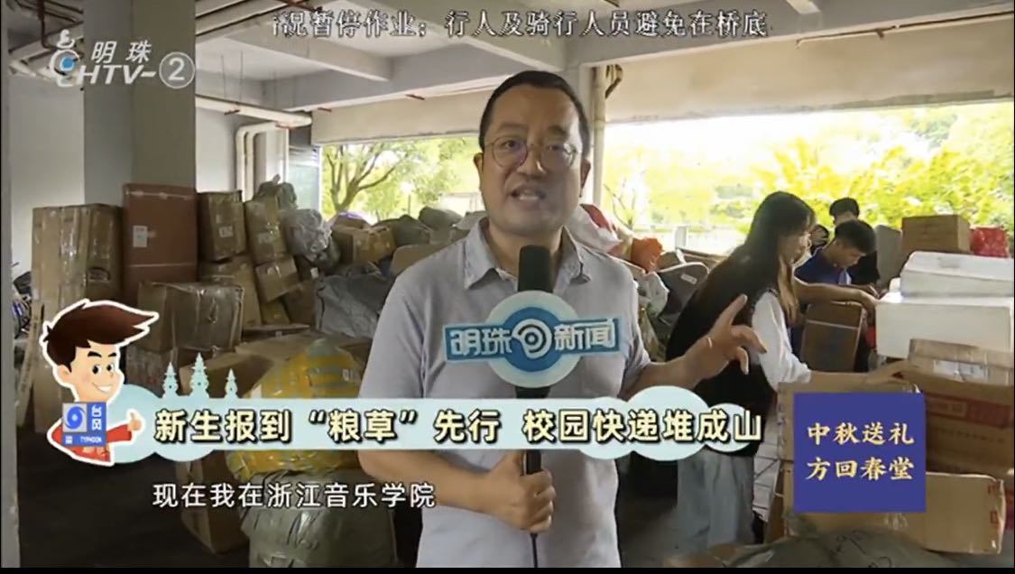 明珠“阿六头说新闻”:新生报到“粮草”先行 校园快递堆成山