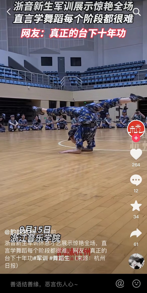 韵味杭州:浙音新生军训休息才艺展示惊艳全场,直言学舞蹈每个阶段都很难