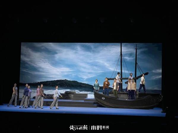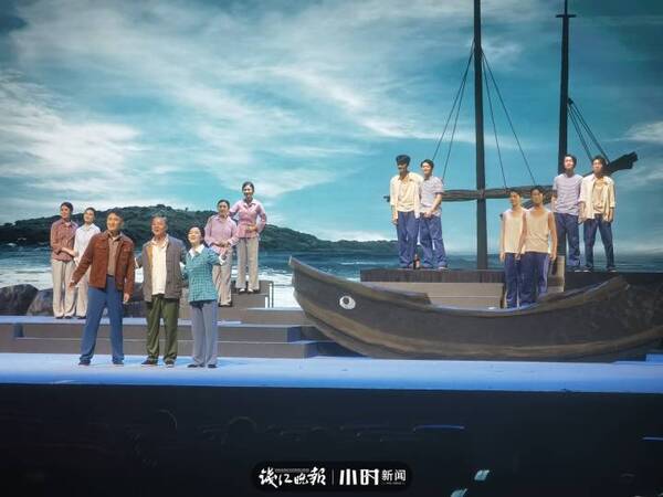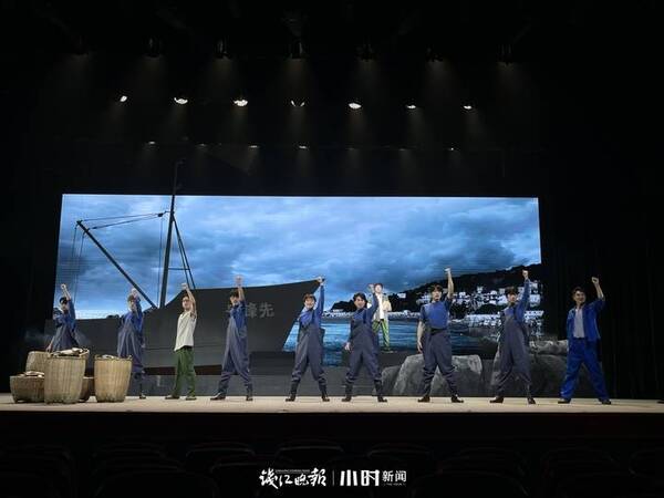 《渔老大》线上首演前几天,小时新闻记者在象山剧院现场观看了该剧的录播。近百名主创团队和演员在这里彩排了近一个月,从灯光、舞台、表演、唱词……导演一遍遍喊停,一遍遍修改完善,力求达到最好的艺术效果。