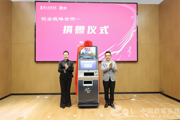 仪式上,双方领导共同签署了校企战略合作协议和智慧校园合作意向书,华数向浙音捐赠政务服务综合自助机,双方还发布了“华数-浙音数字电视栏目”等合作项目。