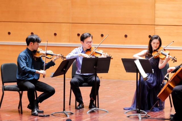 随后,中国当代作曲家张千一的《A调弦乐四重奏》欢快奏响,是其最为著名的室内乐代表作品之一。整部作品充满青春活力,节奏鲜活明快,情感真挚动人。四位演奏家以精湛的演奏技巧、细腻的情感表达,在独立与统一、和谐与对比中,凸显了作品的魅力。
