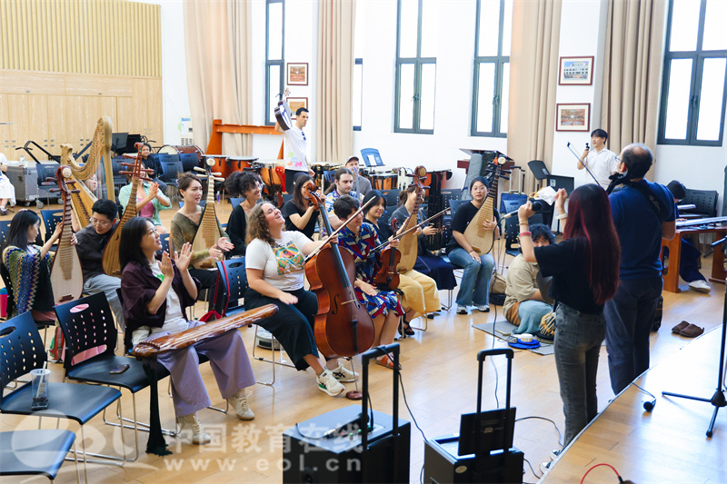 除此外,工作坊还特别设置了由多位导师分别领衔的乐队组合环节——每个乐队在成员结构与乐器配置上都独具匠心:既有琵琶、古琴、箜篌等中国传统乐器演绎的细腻与深邃,也融合钢琴、小提琴等西方乐器,共同呈现出跨文化音乐丰富的层次与动感。