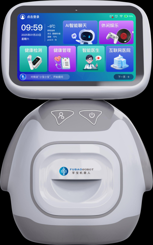 孚宝智能小宝机器人通过日常互动,轻声捕捉长辈的语音、微表情甚至声纹变化,结合专业心理检测仪器,实现对老年心理风险的早期预警,更及时地提醒家人关注老人健康。
