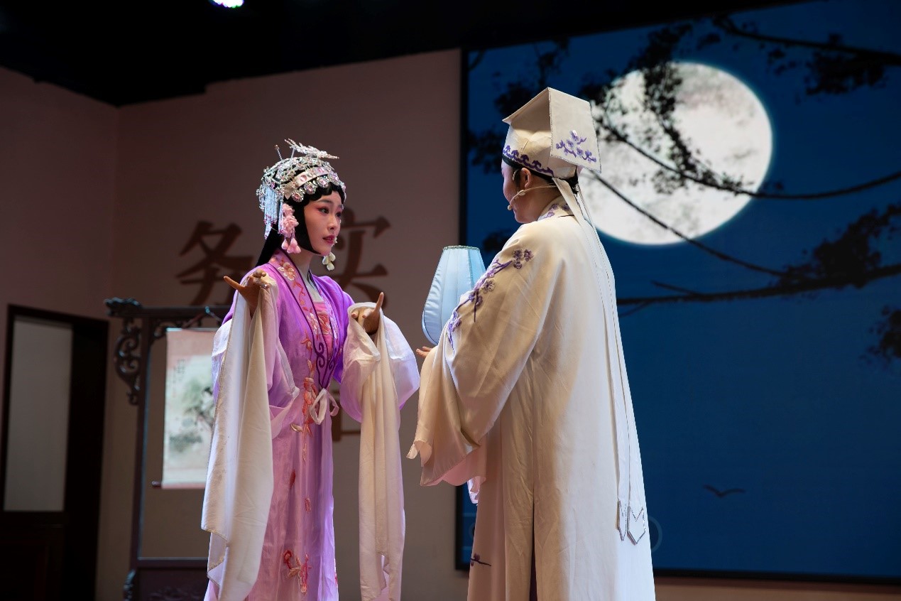 在慈母桥村的文化礼堂,观众们早早聚集,翘首以盼。随着音乐的响起,越剧演出正式拉开帷幕。戏剧学子们以娴熟的演技、动人的唱腔和饱满的热情,为观众们带来了一场视觉与听觉的盛宴。经典剧目《山河恋·送信》《相思树·待郎归》等轮番上演,赢得了在场观众的阵阵掌声和喝彩声。演出间隙,戏剧系师生还与村民们进行了互动交流。他们向村民们介绍了越剧的历史、特点以及学院在越剧教学方面的成果与经验。村民们纷纷表示,通过此次活动,他们对越剧有了更深入的了解和认识,也更加期待未来能够有更多这样的文化交流活动。