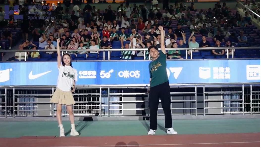 在比赛开场前,浙音学子倾情演绎了《梦想天堂》等歌曲,看台上灯光闪烁,球迷们的歌声与灯光交织成一幅动人的画面,激昂的旋律响彻整个体育场,展现了体育与艺术结合所带来的无限可能。