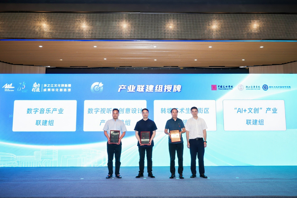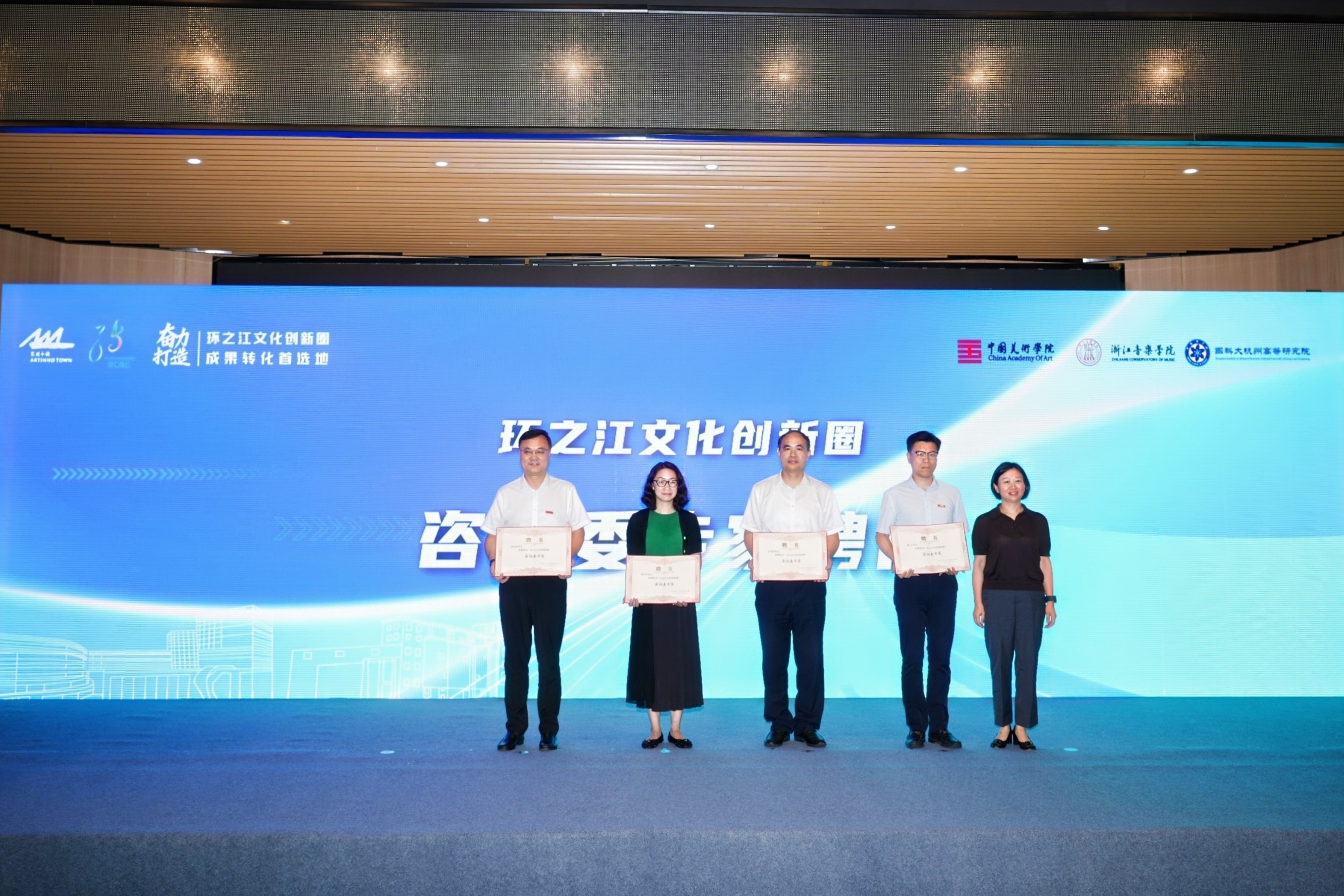 王均寅、傅巧玲、郑崇辉等10位专家受聘为创新圈建设咨询委员会专家,授牌成立“数字视听和创意设计联建组”“数字音乐产业”“AI+文创产业”“转塘艺术生活街区”等4个联建组。