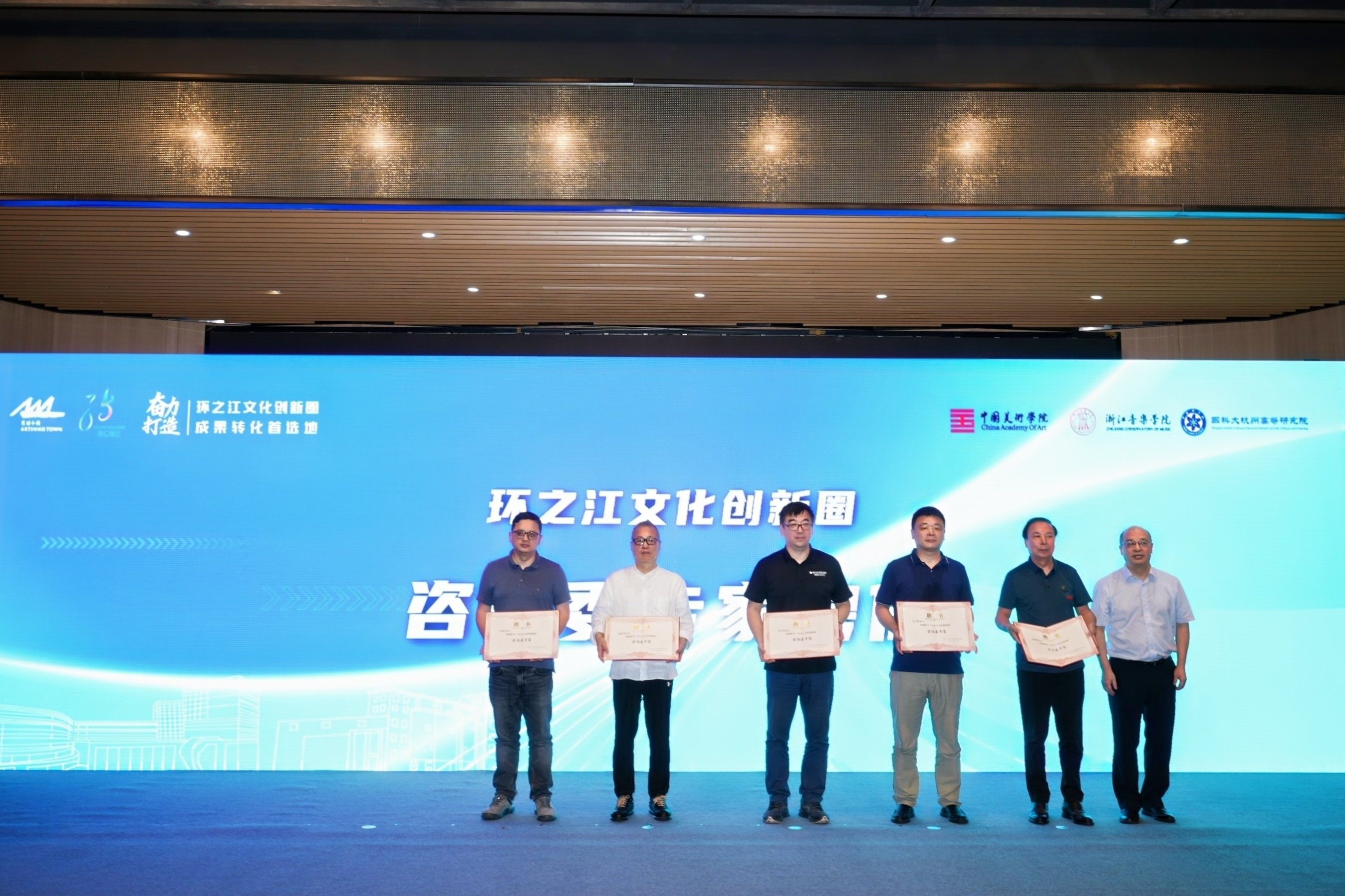 7月4日,“加快‘环之江文化创新圈’建设工作推进会暨成果转化项目签约仪式”在西湖区艺创小镇举行。学院与中国美术学院、国科大杭州高等研究院、艺创小镇、转塘街道发挥“三校一镇一街”资源优势,共同打造生产、生态、生活“三生融合”的文化创新集成和产业培育孵化平台。