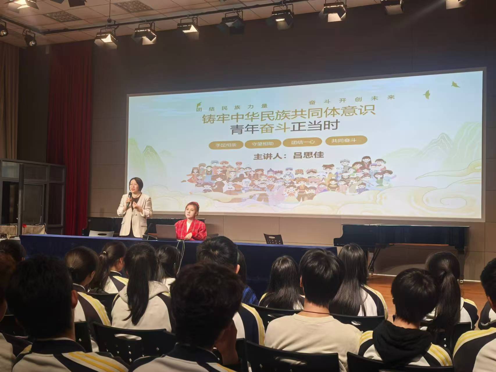此前,“大中小思想政治教育一体化建设”共建系列活动之“大思政课•青年说”在附中楼多功能厅举行。在马院教师董颖博士的指导下,来自音乐学系2021级的本科生吕思佳为附中高二学生作题为《铸牢中华民族共同体意识 青年奋斗正当时》的主题宣讲。