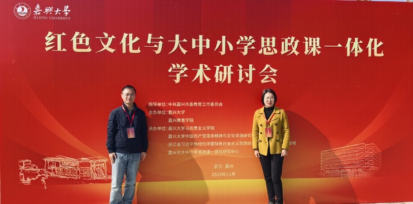 11月22日至24日,首届“红色文化与大中小学思政课一体化”学术研讨会在浙江嘉兴举行。会议由嘉兴大学、嘉兴市大中小学思政课一体化研究中心、嘉兴教育学院组织举办,来自全国30余所高校、中小学的专家学者参会。马克思主义学院青年教师董颖、张亮兆参加此次研讨会。