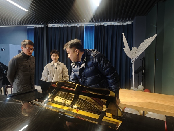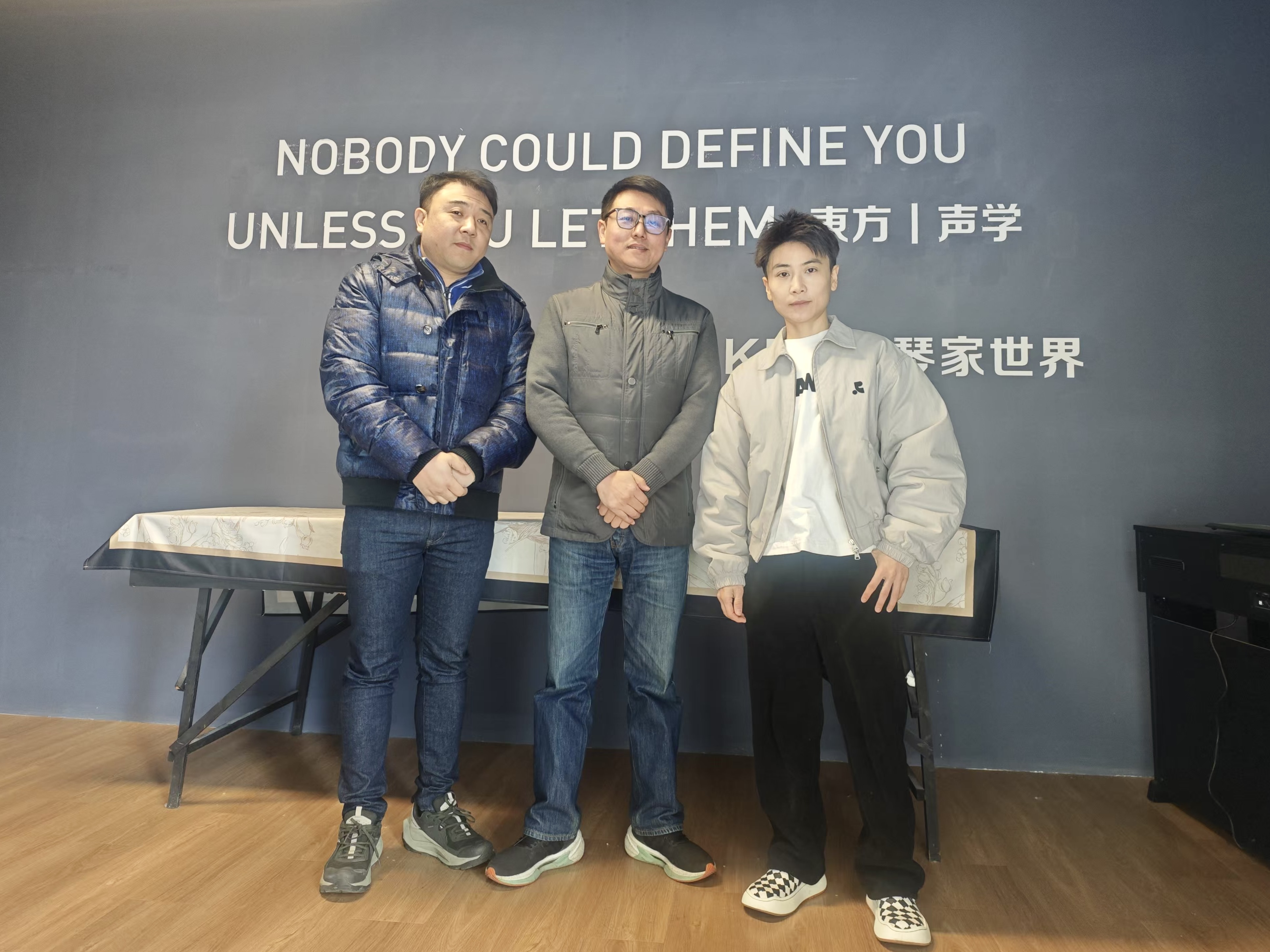 交流结束后,张建化和孟昕毅一同走访参观了公司的钢琴制作展厅,对企业的规模与文化有了更直观的认识,为进一步探讨校企合作模式奠定了基础。