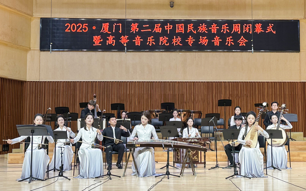 春和景明,鹭岛乐韵正当时。3月26日,浙音民族室内乐团受邀参加“2025·厦门 第二届中国民族音乐周”闭幕式暨高等音乐院校专场音乐会。本次活动由中央音乐学院和厦门市人民政府主办,汇聚了全国顶尖的民族音乐家,旨在通过音乐会、专家讲座及研讨会等形式,弘扬中华优秀传统音乐文化,促进民族音乐的交流与推广。