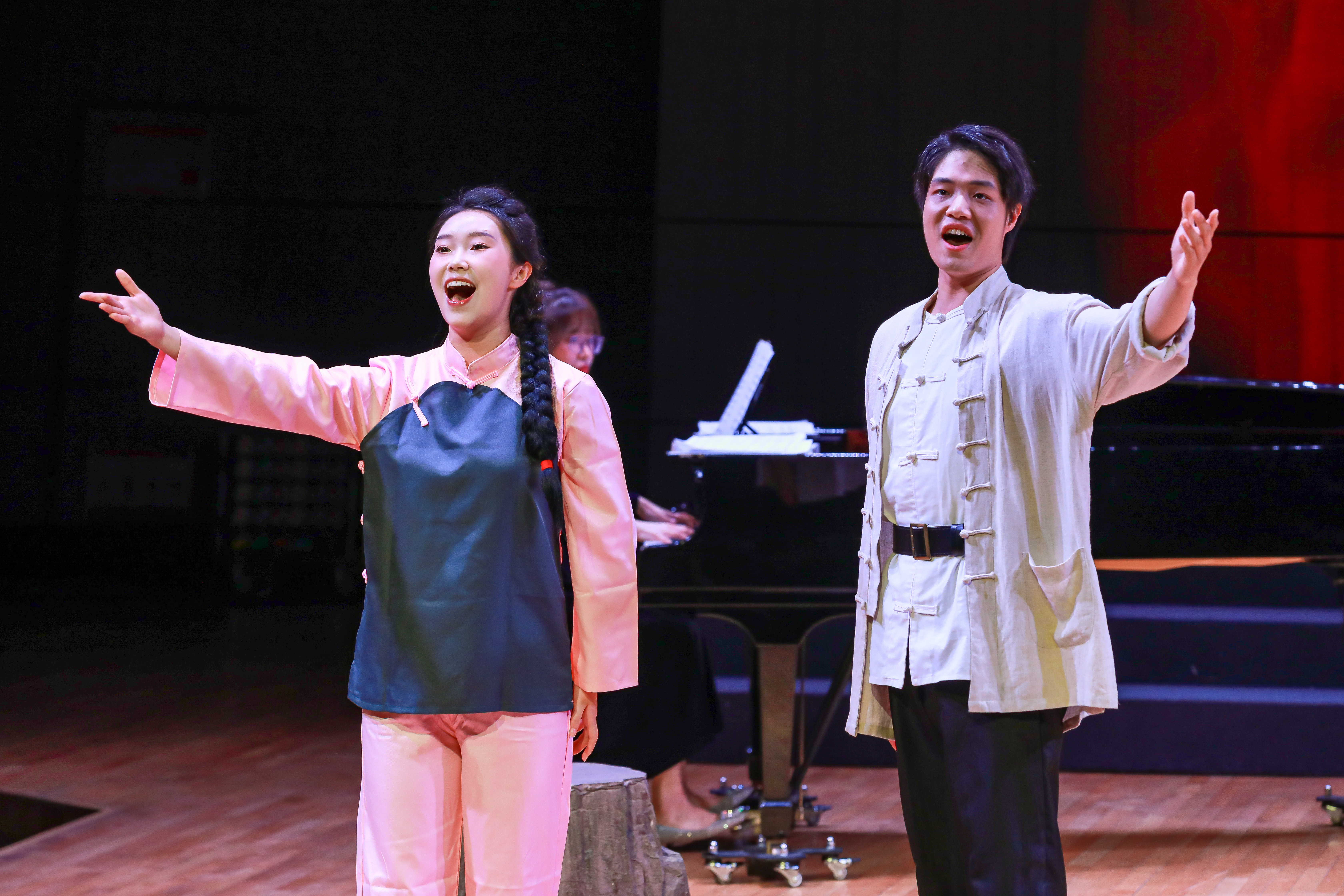 这场展演不仅是2024级研究生歌剧表演课程的精彩汇报,更是声乐歌剧系深耕歌剧学科建设、传承红色文化的生动缩影——恰逢毛泽东同志《在延安文艺座谈会上的讲话》发表83周年,此次展演深情回望与致敬了这段光辉文艺历史,由研究生们倾情演绎了《兄妹开荒》《夫妻识字》《北风吹》《扎红头绳》等精彩片段,集中展现了一批兼具思想性与艺术性、鼓舞人民斗志的优秀中国民族歌剧作品。这些经典作品承载着革命先辈的奋斗记忆,每一个唱段都在诉说着中国共产党领导人民艰苦奋斗的峥嵘岁月,通过学生们的精彩演绎,红色基因得以代代相传,革命精神在新时代焕发生机。