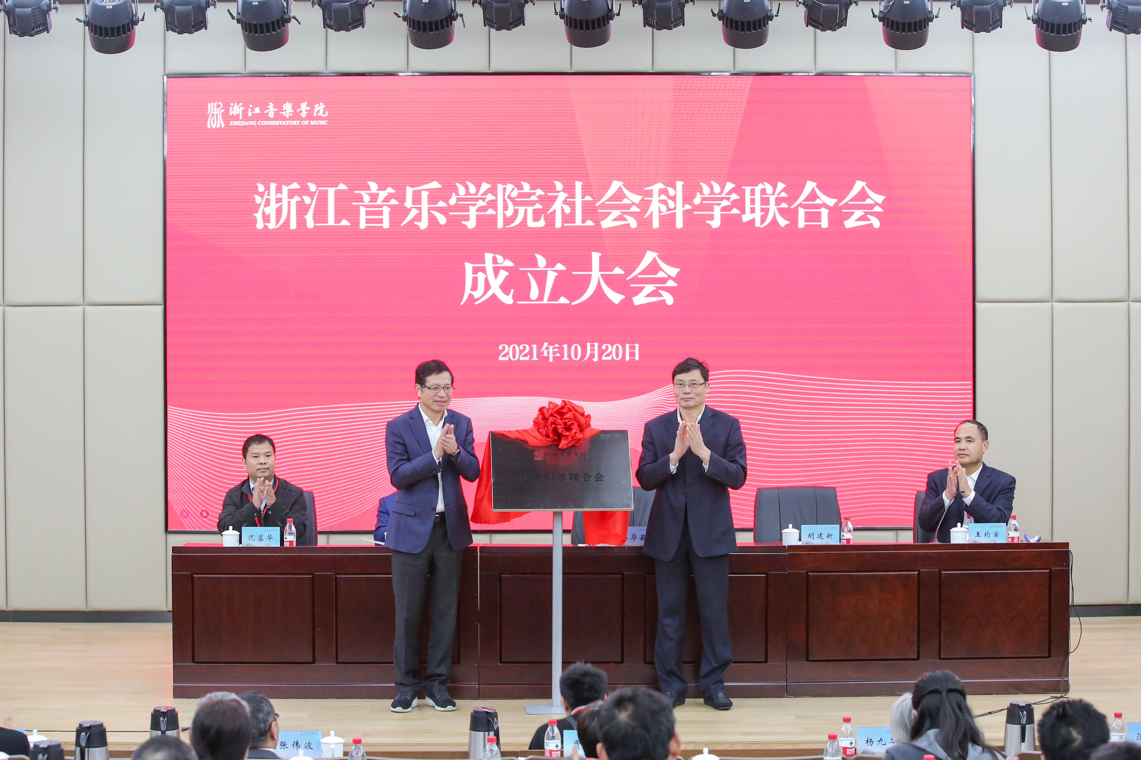 学院党委书记、浙音社科联第一届理事会主席胡建新讲话。他指出,浙音社科联是学院党委领导下的哲学社会科学学术性群众团体,是学院哲学社会科学工作的组织联络和协调服务机构,也是学院联系和团结全校哲学社会科学工作者的桥梁和纽带。下一步,浙音社科联将强化思想引领,把握发展方向,坚持以习近平新时代中国特色社会主义思想和构建中国特色哲学社会科学重要指示精神为指导,聚焦中国音乐艺术领域特色哲学社会科学学科体系、学术体系、话语体系构建,积极开展人文社会科学研究、学术交流和科学技术知识普及等活动。坚持围绕中心,自觉服务大局,发挥“联合”的优势,助力学科发展;发挥“研究”的作用,提升科研创表水平;发挥“育人”的功能,培养社科优秀人才,为实现学院“十四五”发展目标贡献智慧和力量。坚持务实创新,加强自身建设,加强组织建设、加强制度建设、加强平台建设,搭建起学院哲学社会科学工作者展示才华、合作交流、发挥作用的有效平台,为学院建设高水平一流音乐学院,为全省社科事业发展繁荣和浙江省共同富裕示范区建设作出更大贡献。