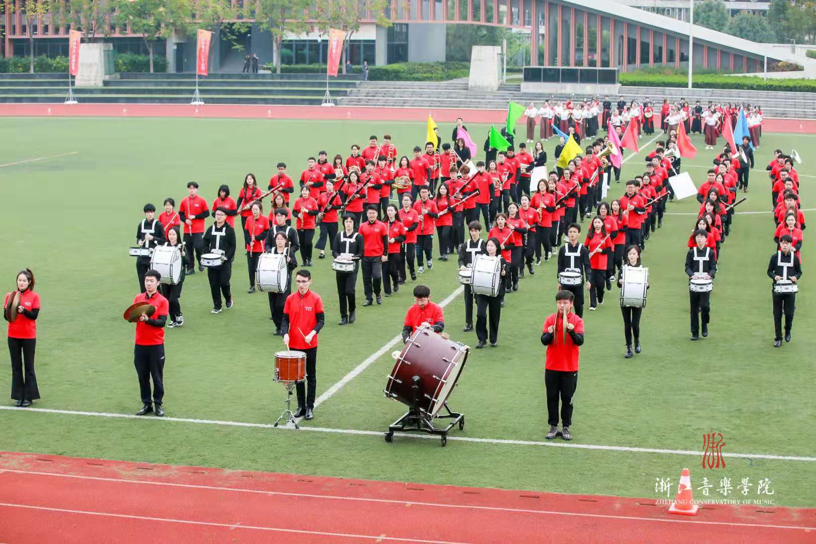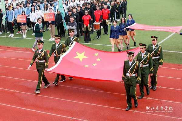 开幕式表演中,交响管乐团演奏了热烈欢快的《康康进行曲》,舞蹈学院用优美的肢体语言描绘了《信仰的红》,国乐系以合奏《国风骁勇》展现当代青年的民族自信,戏剧系将传统与现代、东方与西方艺术有机融合,表演了戏曲形体表演《粉墨铿锵》和音乐剧片段《the nicest kids in town》。活力四射的浙音学子,以音乐与舞蹈的独特魅力,拉开了本届运动会的序幕。