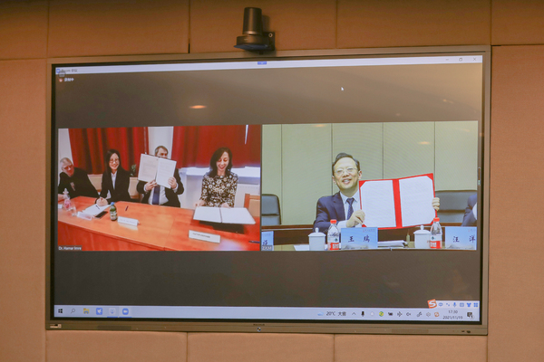 最后,王瑞与郝清新共同签署合作谅解备忘录和交换生协议,待疫情好转两校将互派学生开展联合培养。另外,双方将在科研创作、教师交流、教学材料共享等方面开展全方位合作。