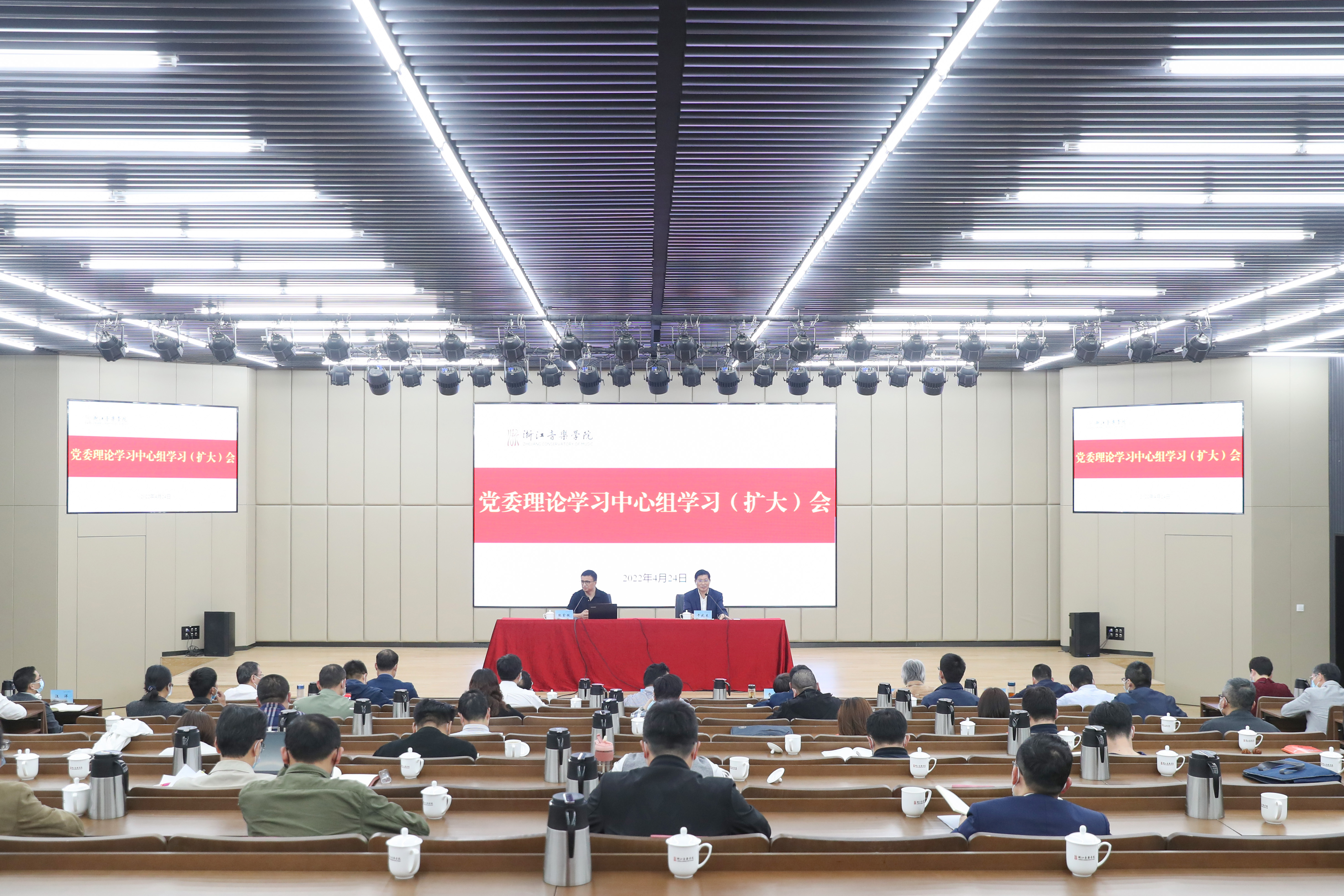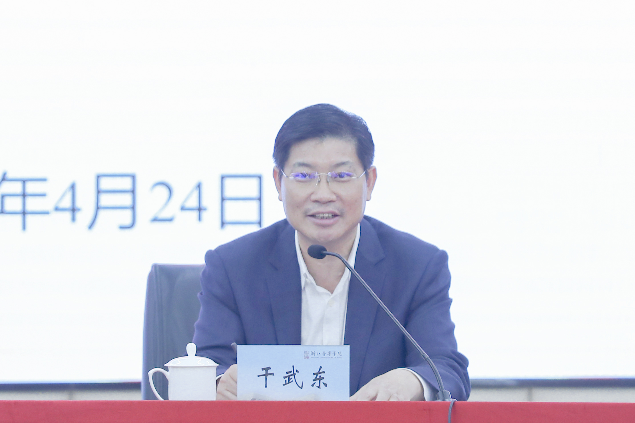 4月24日上午,学院在图书馆报告厅举行党委理论学习中心组“数字化改革”专题学习(扩大)会。会议邀请杭州电子科技大学党委副书记钱波教授,浙江大学信息化总工程师、智云实验室副主任张紫徽作“数字化改革”专题报告。会议由学院党委书记干武东主持。