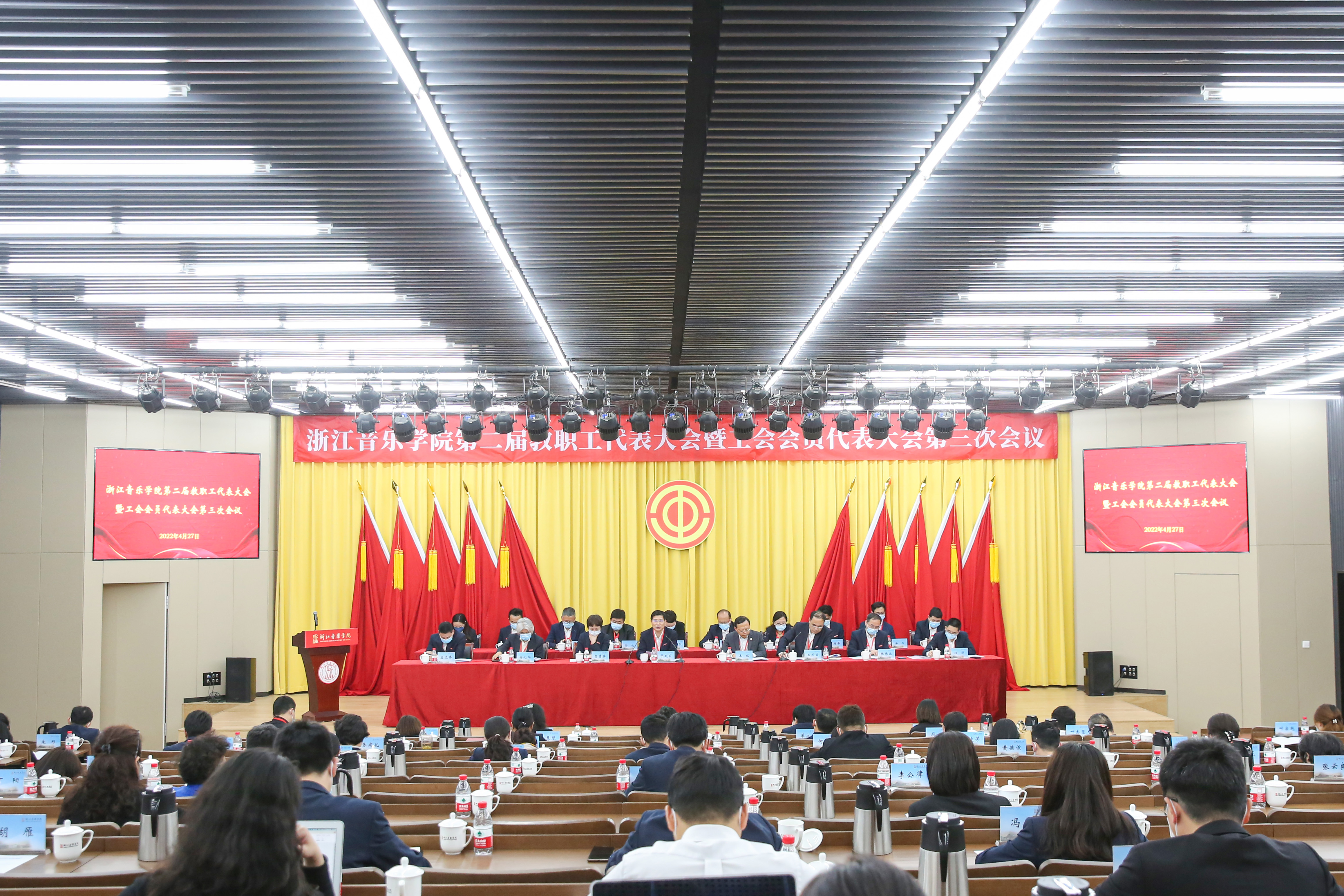 党委书记干武东指出,2022年是学院落实省委巡视和审计整改、深入推进“十四五”发展的关键之年。学院将以什么样的姿态深化改革、以什么样的作为推动发展,需要全院教职员工认真思考、深入谋划。各位代表积极建言献策,提出了许多宝贵的意见和建议,体现了强烈的爱校情怀、荣校愿望、兴校担当。干武东就落实会议精神提出三点意见:一要坚持开放办学,跳出浙音谋发展。思想要开放,深入践行“开门办学”的理念;视野要开阔,从长三角、全国乃至全球的视角来审视发展;机制要灵活,进一步健全完善政产学研合作机制,加强与政府、行业、企业的交流与合作。只有眼光向外,跳出浙音看浙音、跳出浙音谋发展,不断增强汇聚各方资源的能力,才能使浙音的发展道路越走越宽、越走越远。二要心怀“国之大者”,立足全局抓发展。要站在社会主义现代化新征程的全局中、站在文化浙江和共同富裕示范区建设的大局中谋划浙音的建设发展,在落实“立德树人”根本任务中彰显浙音精神,在打造新时代文化浙江高地中体现浙音担当,在助力共同富裕示范区建设中展现浙音作为,将学院发展与国家、民族和人民的未来紧密结合,锚定目标、勇毅前行。三要锚定发展目标,放眼长远促发展。宏伟蓝图已经绘就,目标催人奋进、发展时不我待。要坚持一张蓝图绘到底,坚持“高水平一流”不动摇,坚持凝心聚力不松懈,围绕“十四五”发展规划提出的目标任务,始终坚持高起点规划、高标准建设、高质量发展,牢固树立主人翁意识,积极为学院发展建言献策,与学院同呼吸共命运、同成长共进步。