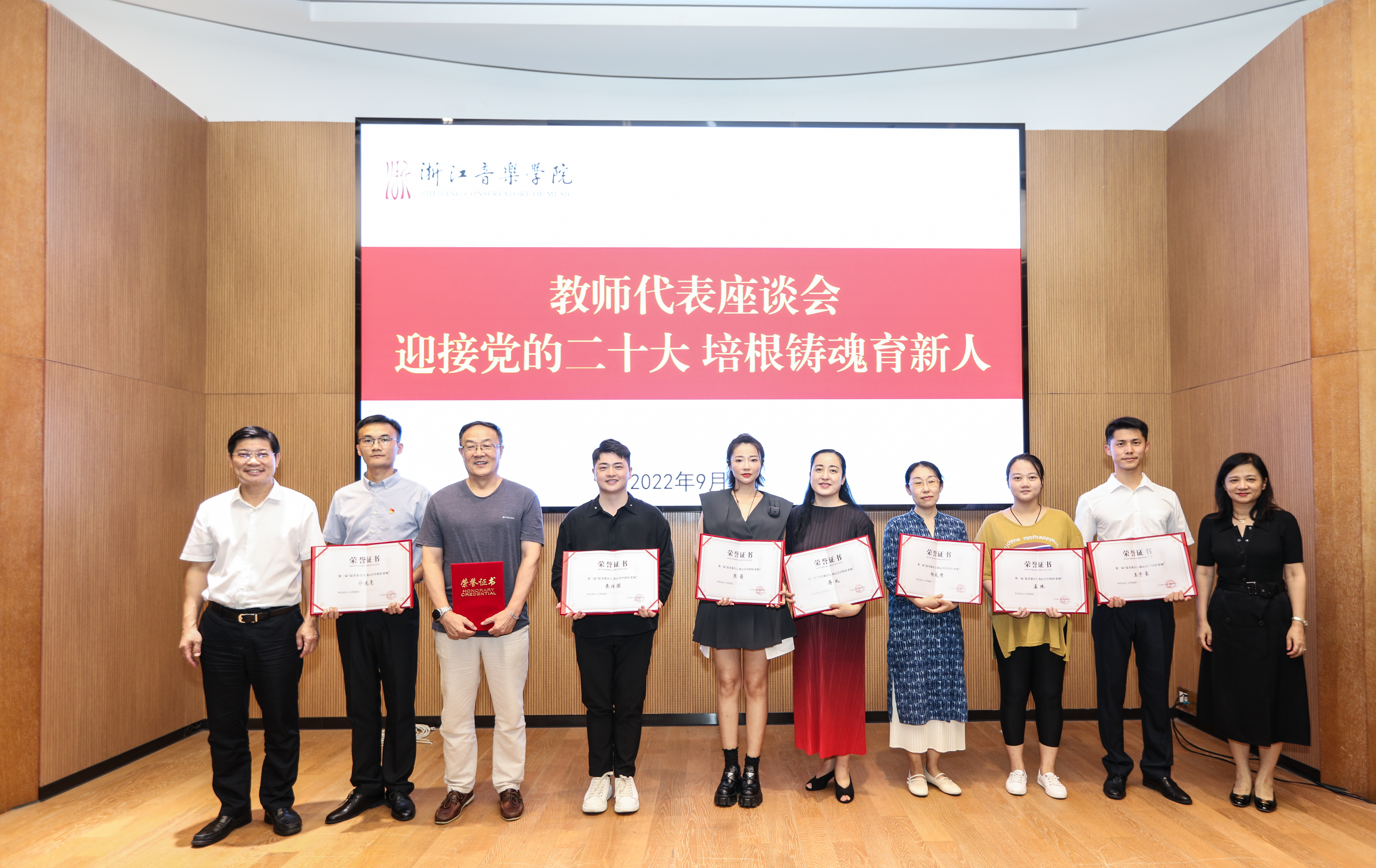 座谈会上,干武东代表学院向辛勤耕耘在教学科研、艺术创表、管理服务等各条战线上的教职员工以及为学院建设、改革、发展付出心血与汗水的退休老教师们致以崇高的敬意,对受到表彰的教师表示衷心的祝贺。他指出,教师是学院创业发展最宝贵的财富,是学院大家庭最可敬的园丁,是“高水平一流音乐学院”建设最重要的力量。学院要培育塑造大作、大师、大幕和大我,全面推进“高水平一流音乐学院”建设,教师队伍是重中之重,是最重要的基础力量。他对广大教师提出三点希望:一是学思践悟,高举思想之旗,深入学习习近平总书记关于教育、文艺的重要论述精神和省第十五次党代会精神,努力在培育塑造大作、大师、大幕、大我中躬身入局、砥砺前行,比学赶超、走在前列;二是立德树人,勇担世范之责,不断提高自身道德修养,做为人师表的大先生、勇于担当的艺术家、懂规守纪的好老师,真正将社会主义核心价值观教育融入教书育人、舞台实践全过程;三是上下齐心,共立精神之柱,要以最终凝练的“浙音人价值观”为大家的共识,并转换为共同的精神动力,在爬坡过坎、变革重塑的关键时期,有力推动学院各项事业的高质量发展,以优异成绩迎接党的二十大胜利召开。