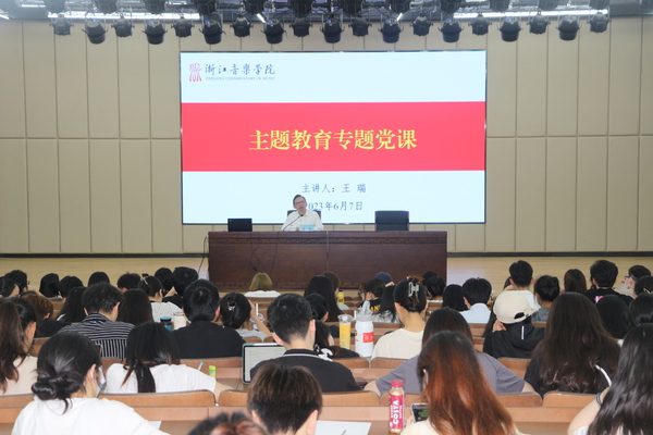 6月7日下午,院长王瑞以“习近平文艺思想”为题,在图书馆B002报告厅面向师生党员讲授专题党课。