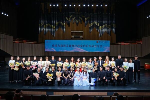 11日晚,“作曲与指挥系教师民族室内乐作品音乐会”由民族室内乐团在音乐厅拉开帷幕。本场音乐会的作品题材、体裁、风格各异,都是近年来作曲与指挥系老师创作的佳作。张泽艺的作品《玉·玲·珑》,在宋代杨万里的诗歌《残雪》中寻找对“美”的抽象化理解,神秘而悠远,精致且典雅。张莹的作品《雪景寒林图》,灵感来源于同名宋画,试图以扬琴细腻多变的音响描绘画中景致。朱慧的作品《寒玉》,灵感来源于方干的唐诗《游雪窦寺》,以登高望远之势描写浙东山水之美。庞莉的作品《蜀觞咏·偶聚》,创作源自家乡宜宾县志中的诗歌,气息悠远自由,音响含蓄内敛。张昕的作品《听风》,特邀著名演奏家唐一雯助演,好似风儿带着人们生活的足迹,带着自然本有的样貌悠然而来,无痕而去。施兰的作品《西出》以陕北民歌赶牲灵为元素,以温暖抒情的语境,刻画西行者内心的憧憬与无畏。李珺的作品《山鸣涧》,以扬琴主奏,小乐队伴奏,在山水之间寄托情思,构筑诗境、画境、乐境。整场音乐会都传递着传统与当代的碰撞,体现了作曲家在民族音乐创作中的不断探索,显现了中青年作曲家在创作上的功力。