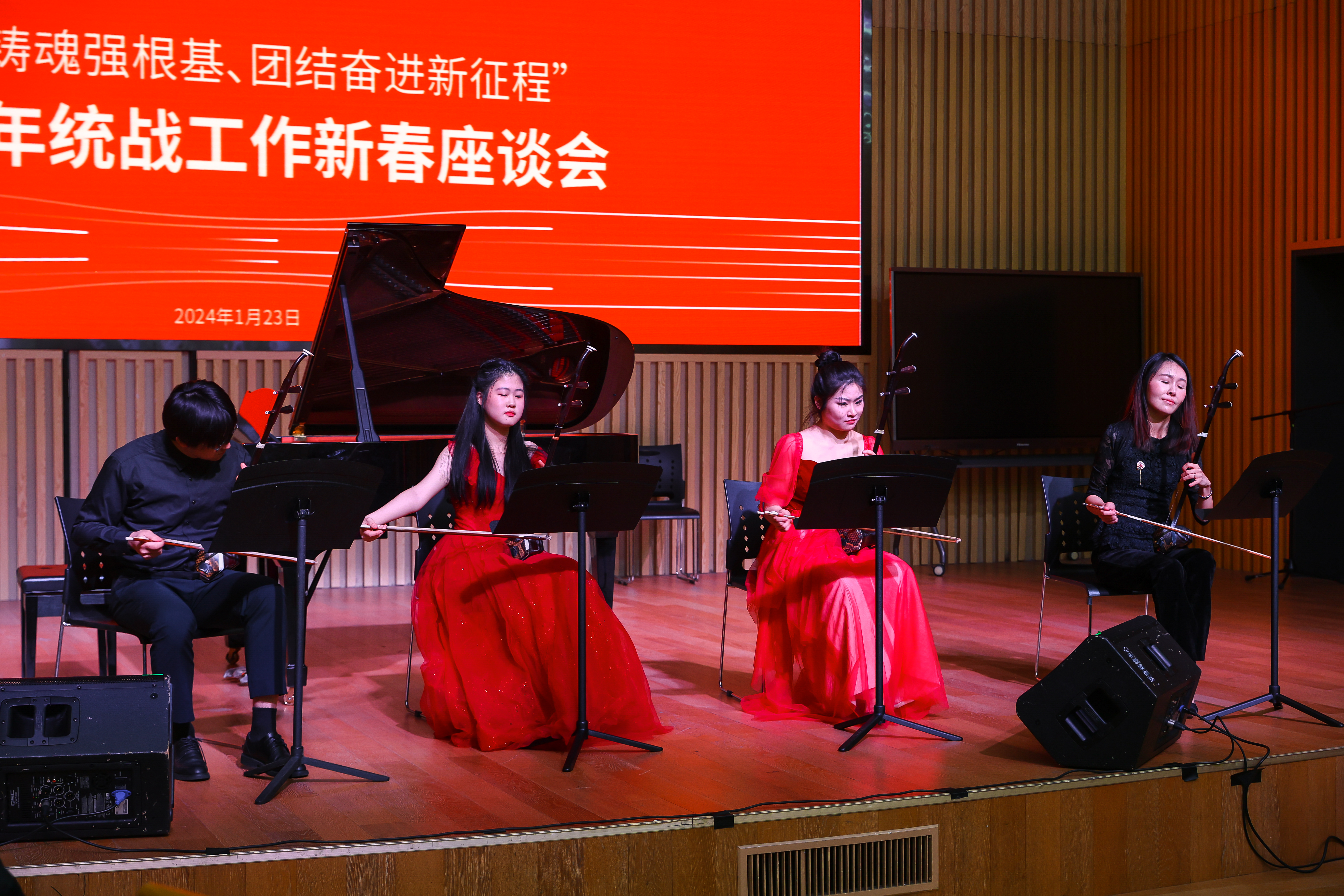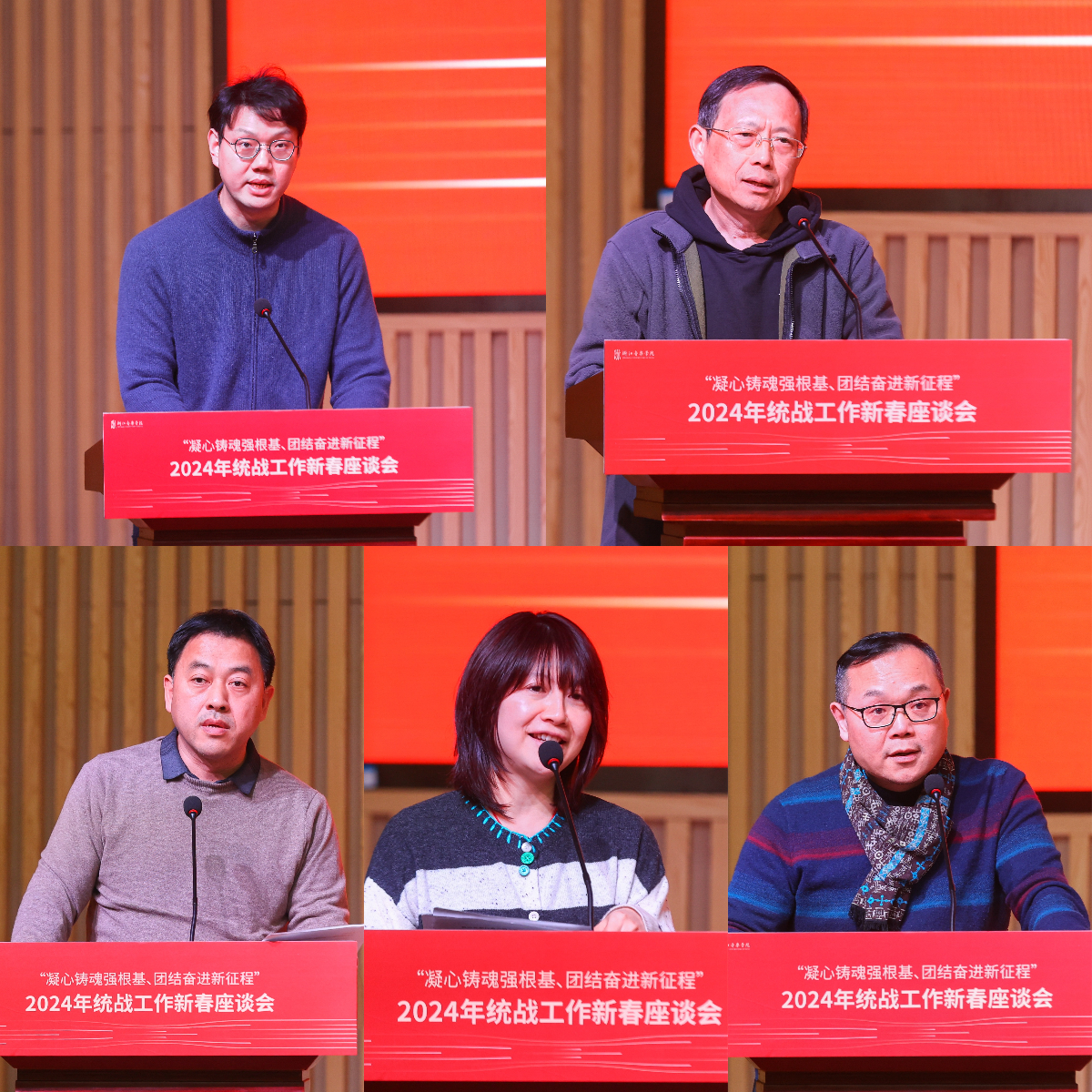 会上,他指出,2024年是全面贯彻党的二十大精神的深化之年,是新中国成立75周年,学校党委将继续团结带领大家凝心聚力谋发展、奋发有为开新局。他勉励大家:一是持续推进政治引领。要深入学习贯彻习近平新时代中国特色社会主义思想,持续开展党的二十大、省第十五次党代会和历次全会精神的学习宣传贯彻,进一步筑牢同党组织亲密合作的思想基础,努力把智慧和力量凝聚到贯彻学校党委工作部署上来,不断提升理论修养、政策水平和专业能力。二是发挥好智力优势。要借助自身优势和各类统战工作载体,着重围绕国家重大战略和浙江经济社会发展需要,以平台建设为支撑,以重大理论创新为重点,努力创作出受大众欢迎的文艺精品力作,继续助力学校高水平办好各类音乐艺术品牌活动。三是提高参政议政水平。要结合自己的研究方向、工作领域,围绕学校中心工作开展深入调研,不断提升统战理论研究能力,为学校党政工作积极建言献策,为文化强省建设提出高质量的议案、提案和建议。四是利用好统战平台。要发挥好各类统战人才平台作用,在“引育用留”四个环节中发挥重要力量,积极参与两大矩阵建设,共同助力打造“同心归音”统战品牌,努力在深化国际交流与合作中找到统战工作着力点和突破点。