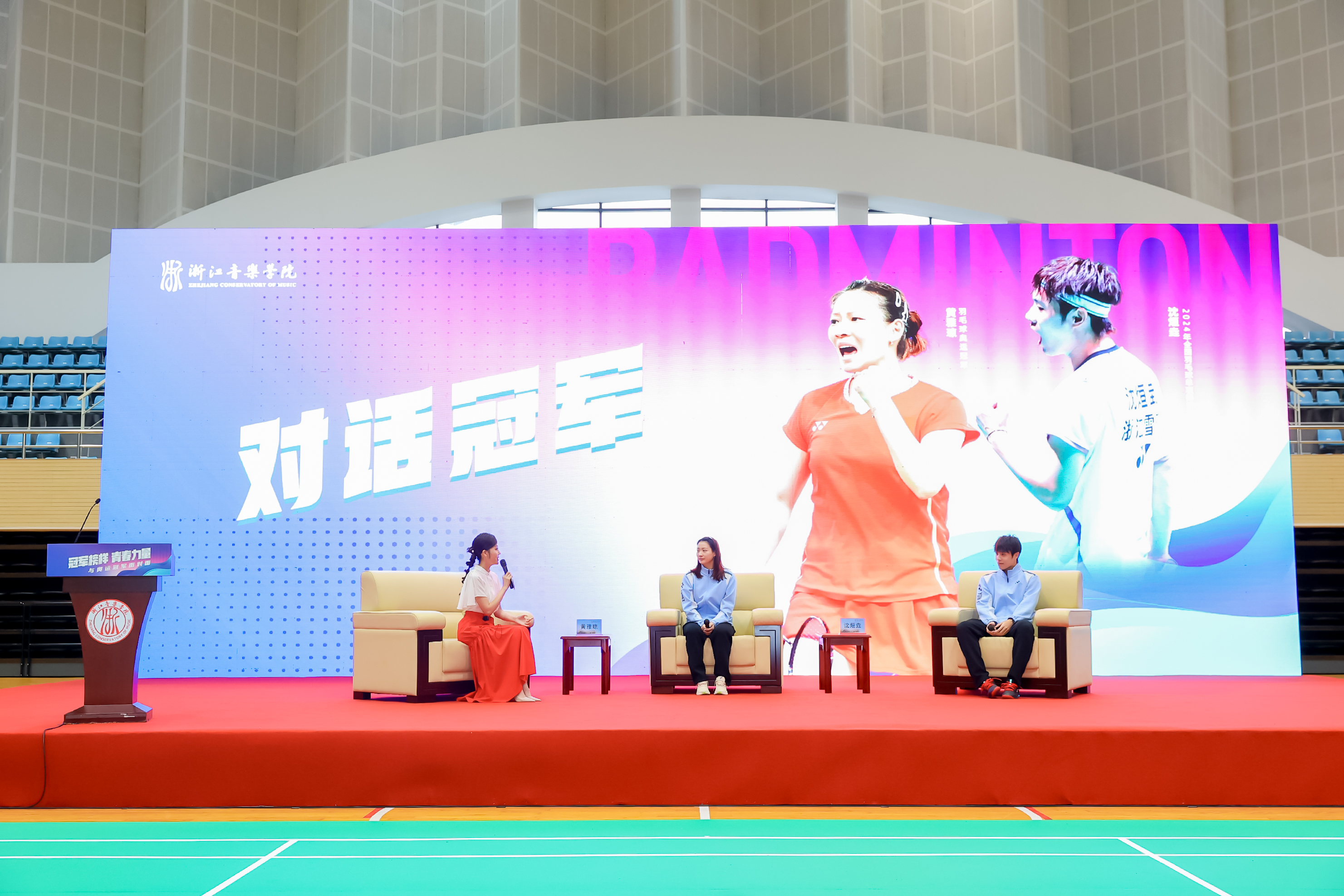 党委副书记王均寅向两位冠军的到来表示热烈欢迎。他表示,两位冠军都是浙江籍运动员,在国际赛场上展现了卓越的竞技水平和年轻一代运动员的潜力和实力;他们的坚持与毅力、团队精神和专业素养,更是广大师生学习的榜样。浙音始终致力于将音乐艺术与体育健康相结合,打造全面发展的校园文化环境,提升每位同学的综合素质。希望大家以此次活动为契机,进一步感受体育精神的魅力,学习冠军们敢于挑战、勇于超越的进取精神,相互鼓励、共同进步的团队精神,不畏艰难、勇往直前的拼搏精神,在不断进取的过程中展现青春之我、奋斗之我。