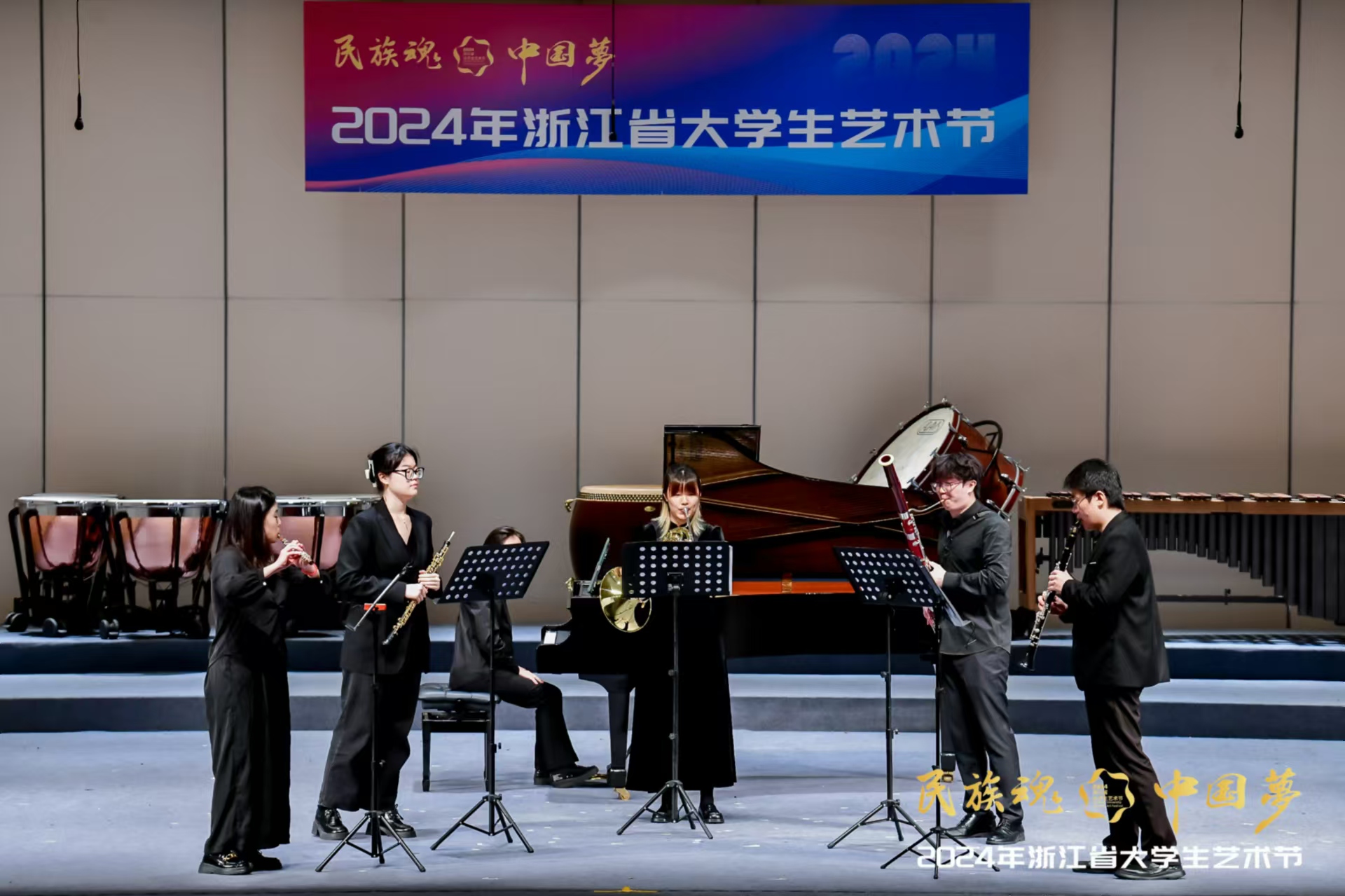 在智慧与汗水交织的舞台、在各类比赛与展示的广阔天空,浙音学子绽放着属于自己的光芒。在2024年浙江省大学生艺术节中,学院选送的参赛节目经过初赛、现场决赛,共斩获一等奖6项、二等奖1项、十佳歌手奖5名、优秀歌手奖1名,学院获“优秀组织奖”。