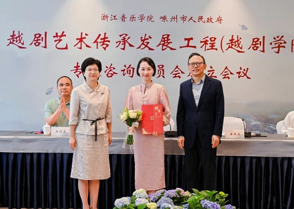 王瑞、潘超英为越剧艺术传承发展工程(越剧学院)专家咨询委员会揭牌。