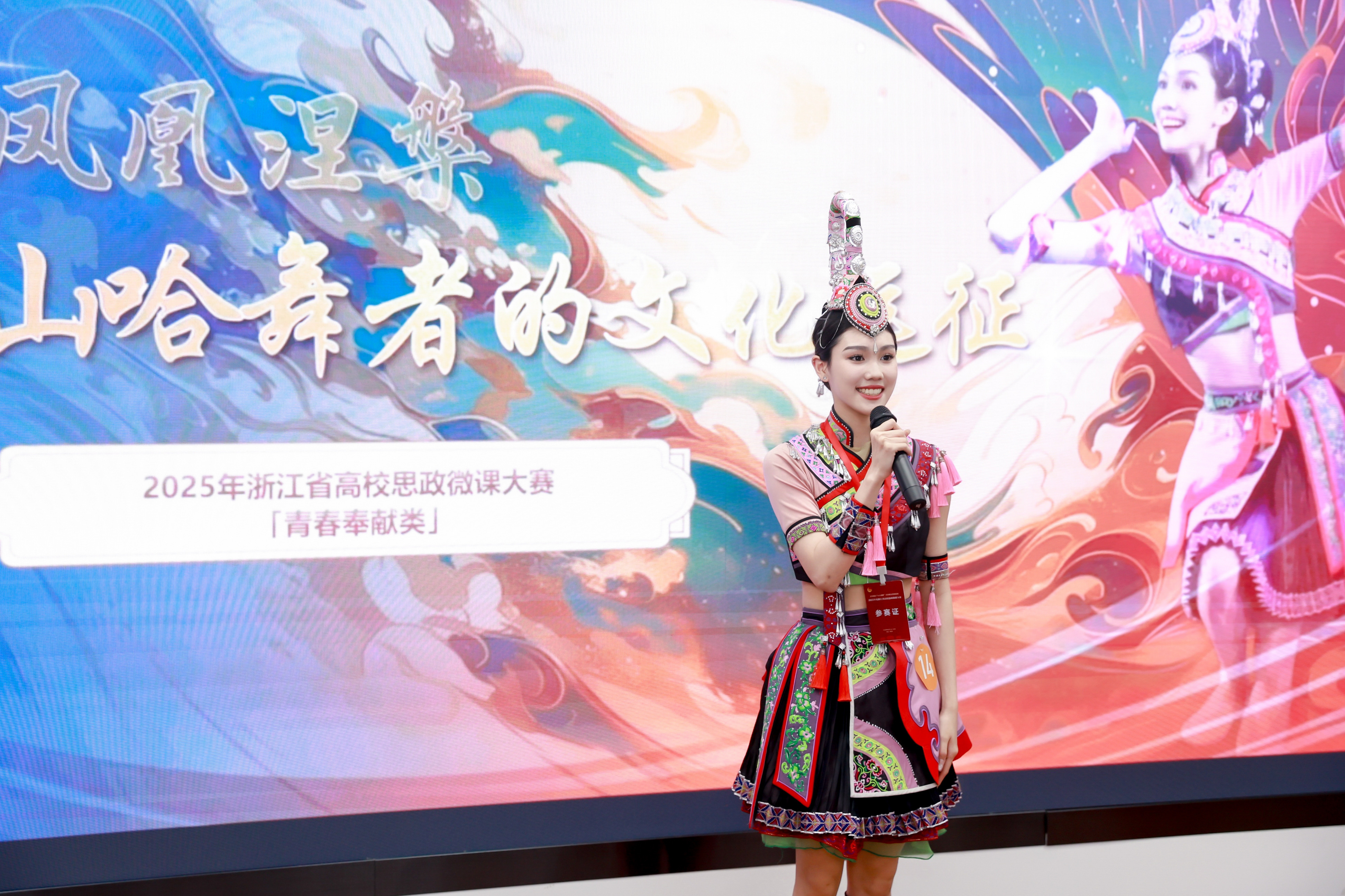 近日,由共青团浙江省委、浙江省教育厅、浙江省学生联合会举办的2025年度浙江省高校思政微课大赛决赛落幕。我校舞蹈学院青年教师曹端丹从全省107所高校610名选手中脱颖而出获教师组特等奖。这是我校连续三年荣获特等奖并入围全省展示。