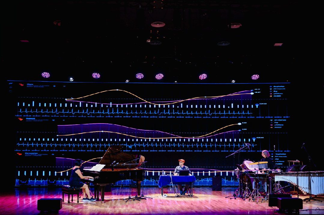 开幕式音乐会汇聚来自中国、希腊、美国、法国、德国等多国作曲家,以前沿科技融合传统器乐表演,呈现了《遐想》——视听艺术现场,《撞裂锥》——为小提琴与电子音乐而作,《宝塔印象》——为 Wacom 数字画板而作的实时作品,《再见,小王子》——人工智能交互音乐表演等7部风格各异的电子音乐力作。在代码与算法编织的声景中,听众得以窥见数字音乐从创作工具到艺术载体的深刻转变,也见证了数智时代音乐创作的多元可能。